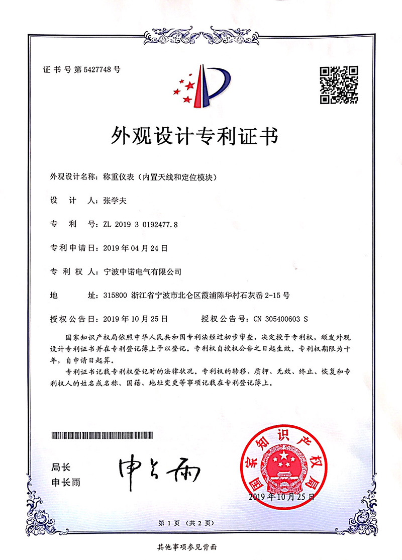 專利-稱重儀表(內(nèi)置天線和定位模塊)